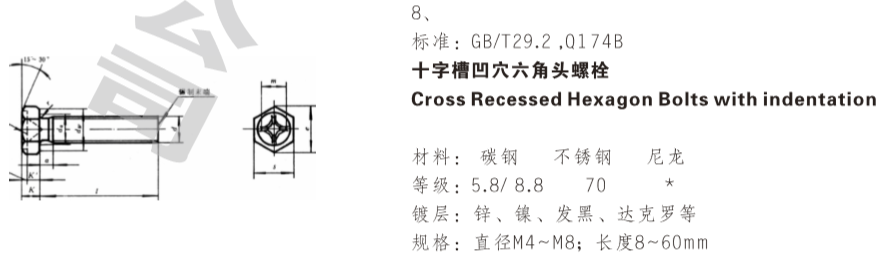 十字槽凹穴六角头螺栓…